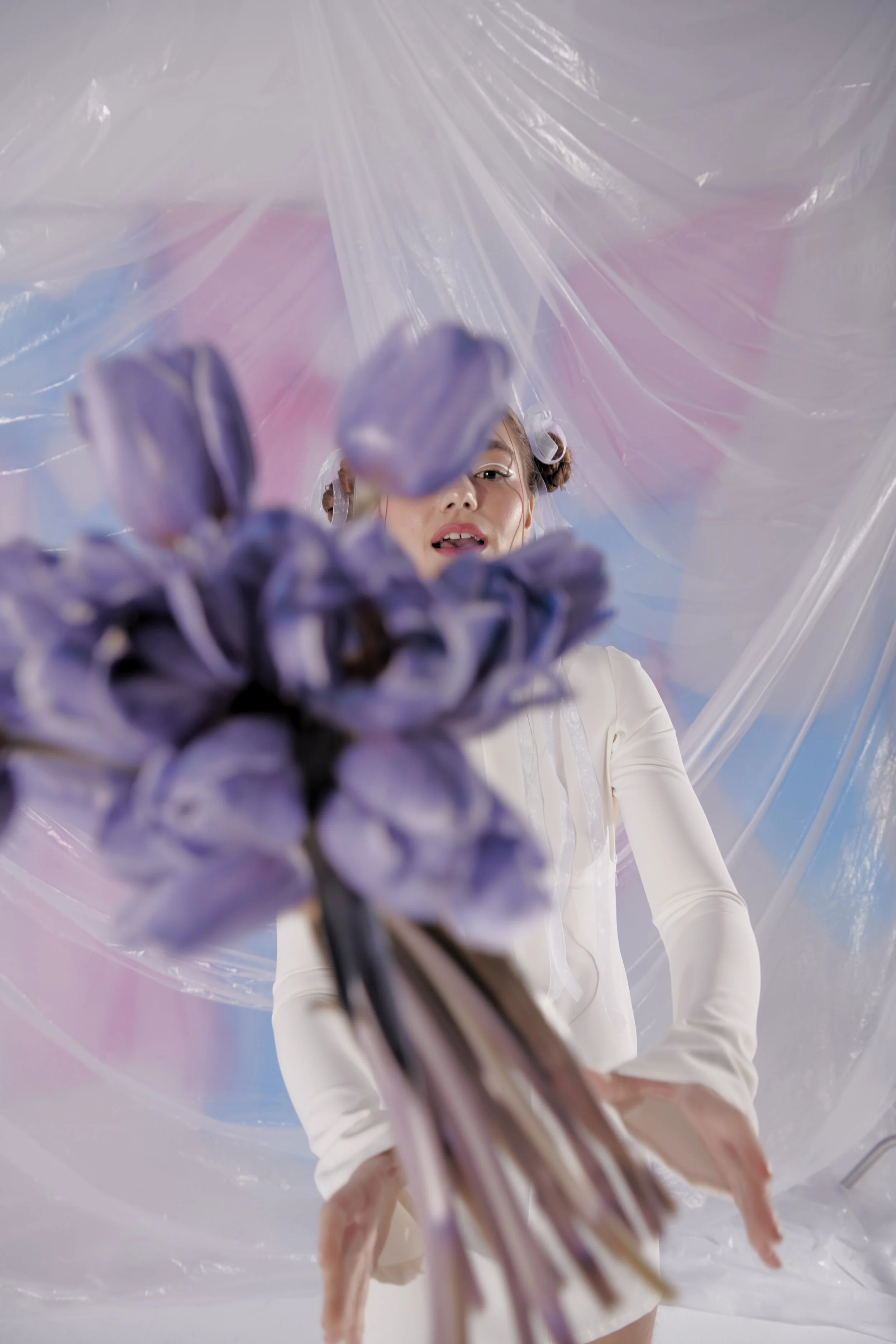 Arte floral de Medialima y MUAH de Martha Garay son la guinda del pastel para crear una anti-novia contemporánea en una escena futurista y minimalista.